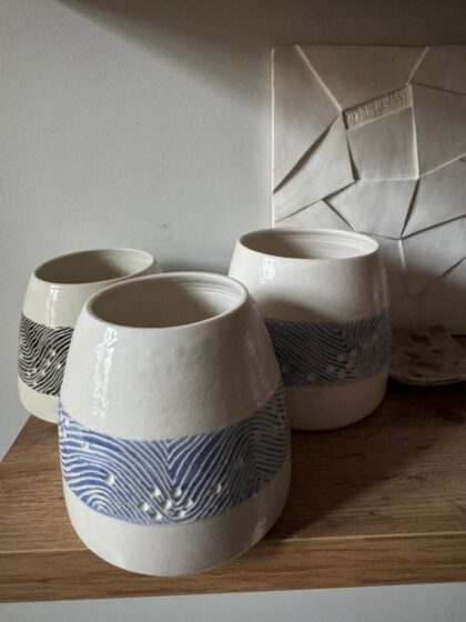 Monter une pièce au tour, au boudin ou à la plaque est très sensuel, pour ensuite la graver, la lisser, faire des motifs avec des engobes ou des émaux est addictif. Quel plaisir concret la création!